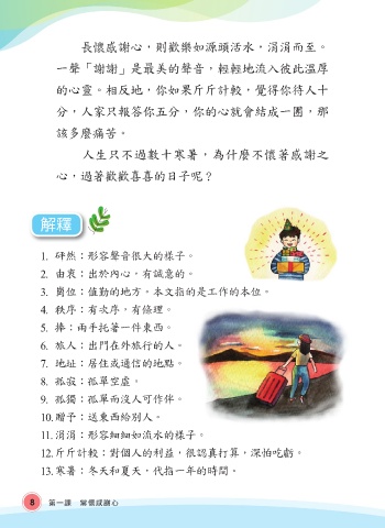12. 斤斤計較:對個人的利益,很認真打算,深怕吃虧。