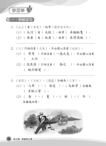 1. (山上)有(老虎),經常(傷害老百姓)。