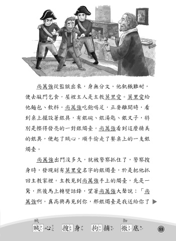 回主教家裡。主教見到尚萬強手上的燭臺,先是一