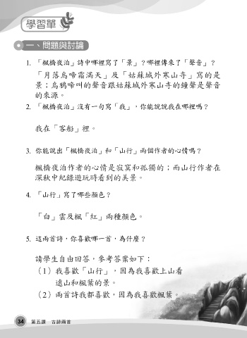 3. 你能說出「楓橋夜泊」和「山行」兩個作者的心情嗎?