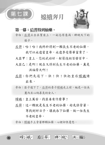旁白: 嫦娥手上拿著那顆仙藥,心裡卻很憂愁。