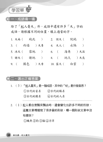 2. ( ) 杞人看白雲飄來飄去時,還會變化出許多不同的形狀,