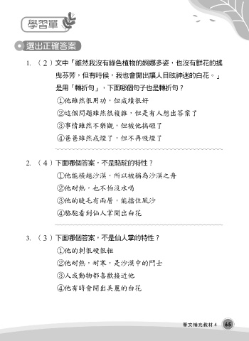 3. ( )下面哪個答案,不是仙人掌的特性?