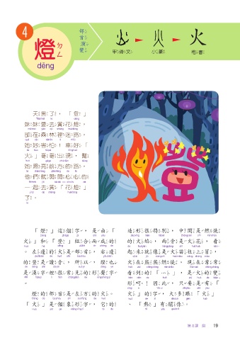 的登是讀音,所以,燈也 火在熊熊燃燒。現在常常