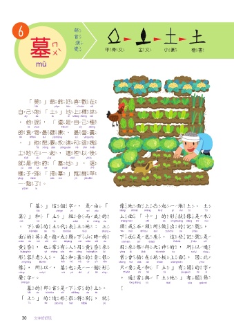 莫」和「土」組合而成的 上面「十」的形狀像是木