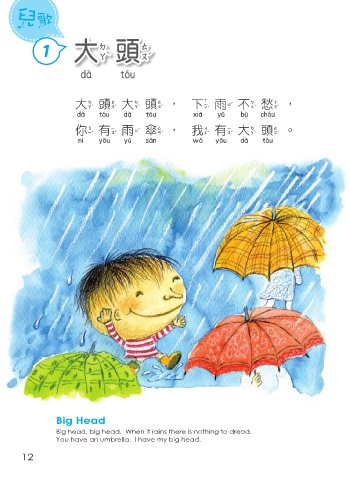 1 大頭 大頭 大頭大頭,下雨 不 愁, 大頭大頭 下雨不愁 你有雨傘,我有大頭。 你有雨傘 我有大頭 Big Head Big head, big head. When it rains there is nothing to dread. You have an umbrella. I have my big head. 12