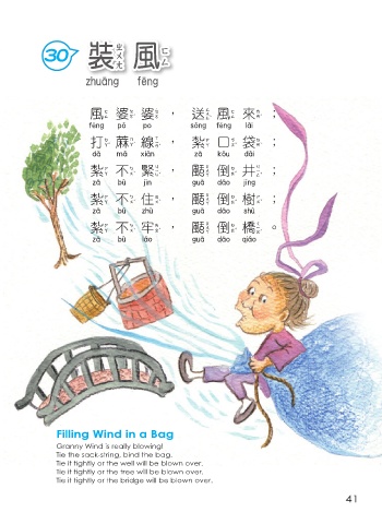 Big snowflakes drifting down; Tie the sack-string, bind the bag.