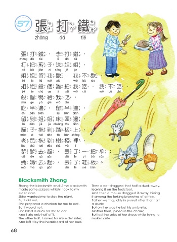 Zhang the blacksmith and Li the blacksmith Then a cat dragged that half a duck away,
