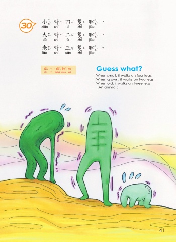 小時四隻腳, 30 小時四隻腳 大時二隻腳, 大時二隻腳 老時三隻腳。 老時三隻腳 猜 一 種動物 Guess what? 猜一種動物 When small, it walks on four legs. When grown, it walks on two legs. When old, it walks on three legs. ( An animal ) 41