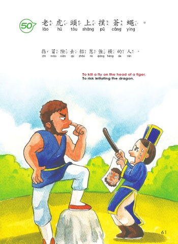 老虎頭上撲蒼蠅。 50 老虎頭上撲蒼蠅 指冒險去招惹強 橫 的人。 指冒險去招惹強橫的人 To kill a fly on the head of a tiger. To risk irritating the dragon. 61