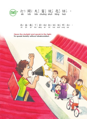 打開天窗說亮話。 56 打開天窗說亮話 指直截 了當地 把話說明白。 指直截了當地把話說明白 Open the skylight and speak in the light. To speak frankly without dissimulation. 67