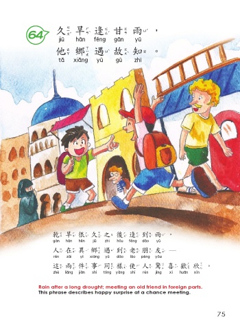 久旱逢甘雨, 64 久旱逢甘雨 他鄉遇故知。 他鄉遇故知 乾旱很久之後逢到雨, 乾旱很久之後逢到雨 人在異鄉遇到老朋友 - 人在異鄉遇到老朋友 這兩件事同樣使人驚喜歡欣。 這兩件事同樣使人驚喜歡欣 Rain after a long drought; meeting an old friend in foreign parts. This phrase describes happy surprise at a chance meeting. 75