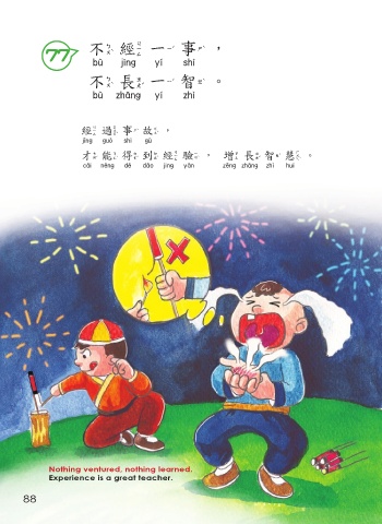 不 經一事, 77 不經一事 不 長 一智。 不長一智 經過事故, 經過事故 才能得到經驗,增 長 智慧。 才能得到經驗 增長智慧 Nothing ventured, nothing learned. Experience is a great teacher. 88