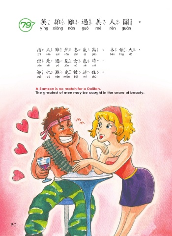 英雄難過美人關。 79 英雄難過美人關 指人雖然志氣高、本領大, 指人雖然志氣高 本領大 但是遇見女色時, 但是遇見女色時 卻也難免被迷住。 卻也難免被迷住 A Samson is no match for a Delilah. The greatest of men may be caught in the snare of beauty. 90