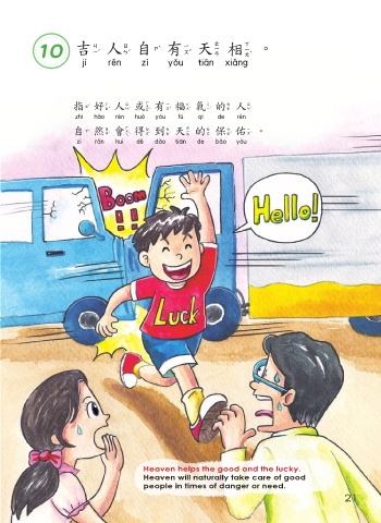 10 吉人自有天 相 。 吉人自有天相 指好人或有福氣的人 指好人或有福氣的人 自然會得到天的保佑。 自然會得到天的保佑 Heaven helps the good and the lucky. Heaven will naturally take care of good people in times of danger or need. 21