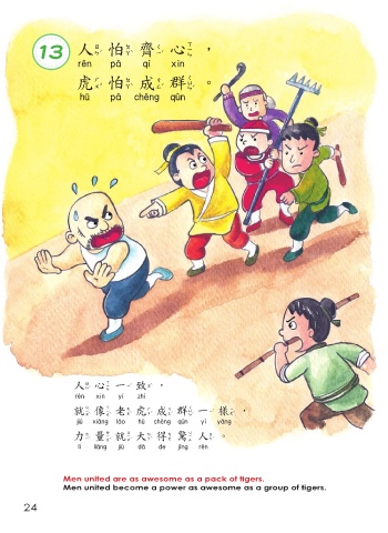 13 人怕齊心, 人怕齊心 虎怕成群。 虎怕成群 人心一致, 人心一致 就像老虎成群一樣, 就像老虎成群一樣 力量就大 得 驚人。 力量就大得驚人 Men united are as awesome as a pack of tigers. Men united become a power as awesome as a group of tigers. 24