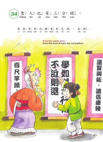 34 聖人也有三分錯。 聖人也有三分錯 意指聖賢也難免有失誤、差錯。 意指聖賢也難免有失誤 差錯 Even the saints error. Even the best of men are not perfect. 45