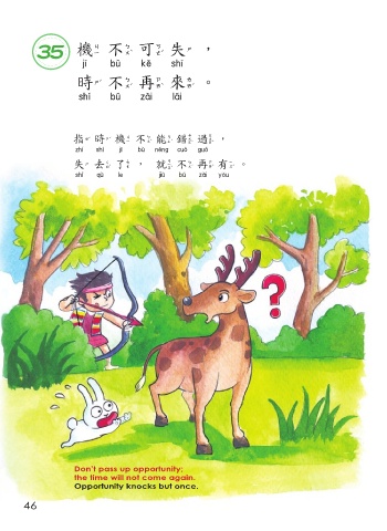 35 機 不 可失, 機不可失 時不再來。 時不再來 指時機 不 能錯過, 指時機不能錯過 失去了,就不再有。 失去了 就不再有 Don’t pass up opportunity; the time will not come again. Opportunity knocks but once. 46