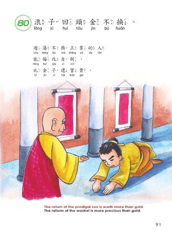 80 浪子回頭金不換。 浪子回頭金不換 遊蕩不務正業的人 遊蕩不務正業的人 能悔改自新, 能悔改自新 比金 子 還寶貴。 比金子還寶貴 The return of the prodigal son is worth more than gold. The reform of the wastrel is more precious than gold. 91