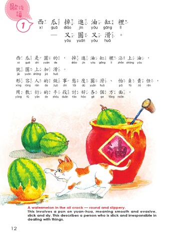 This involves a pun on yuan-hua, meaning smooth and evasive,