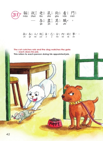 貓捉老鼠狗 看 門 31 貓捉老鼠狗看門 ─各盡其職。 各盡其職 指各人做自己 分 內的事。 指各人做自己分內的事 The cat catches rats and the dog watches the gate ─ each does his job. This refers to each person doing his appointed job. 42