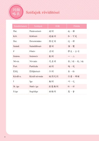 詞類 Szófajok rövidítései