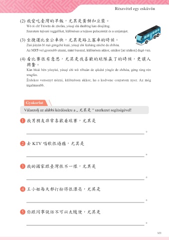 Válaszolj az alábbi kérdésekre a „ 尤其是 “ szerkezet segítségével!