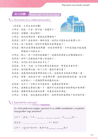 Az előző párbeszéd alapján egészítsd ki az alábbi mondatokat a megfelelő