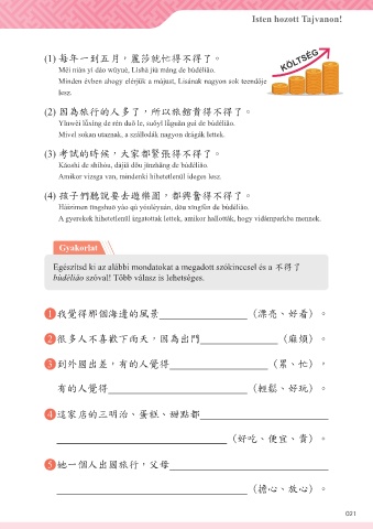 Egészítsd ki az alábbi mondatokat a megadott szókinccsel és a 不得了