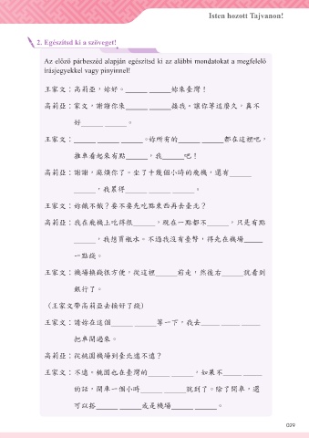 Az előző párbeszéd alapján egészítsd ki az alábbi mondatokat a megfelelő