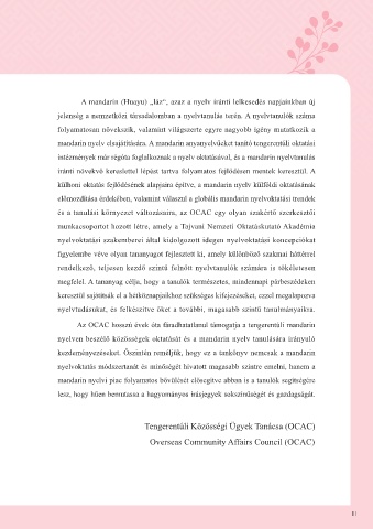mandarin nyelv elsajátítására. A mandarin anyanyelvűeket tanító tengerentúli oktatási