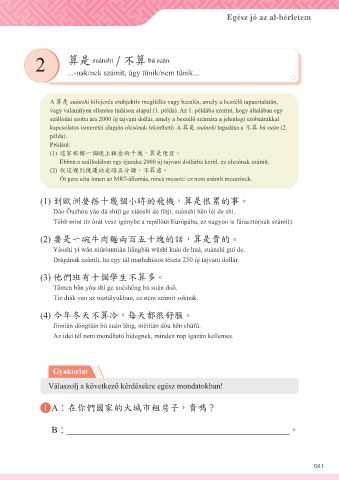 kapcsolatos ismeretei alapján olcsónak tekinthető. A 算是 suànshì tagadása a 不算 bú suàn (2.