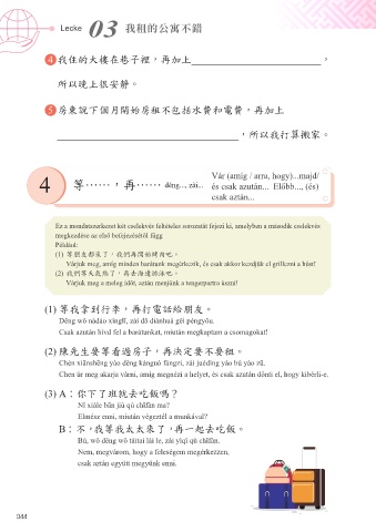 4 等……,再…… děng..., zài... Vár (amíg / arra, hogy)...majd/