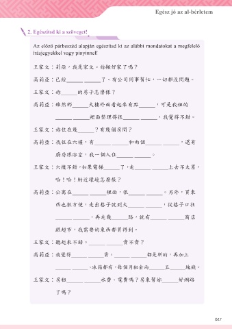Az előző párbeszéd alapján egészítsd ki az alábbi mondatokat a megfelelő