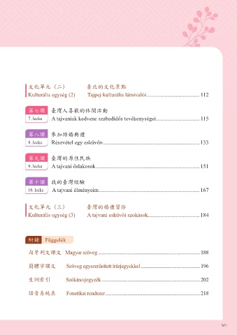 7. lecke A tajvaniak kedvenc szabadidős tevékenységei ............................... 115