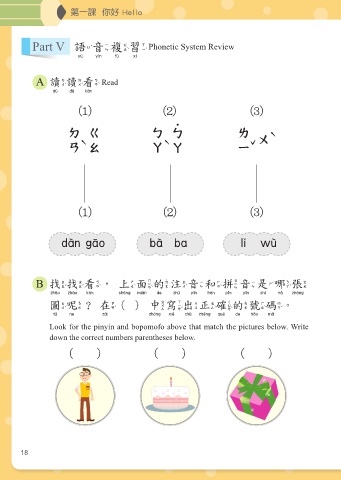 Look for the pinyin and bopomofo above that match the pictures below. Write