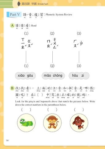 Look for the pinyin and bopomofo above that match the pictures below. Write