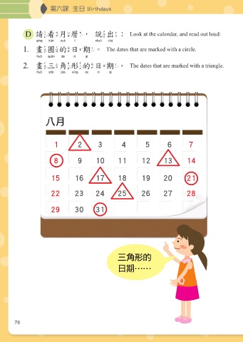 D 請看月曆,說出:Look at the calendar, and read out loud:
