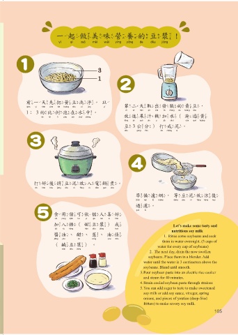 醬油、醋、蔥、油條 1. Rinse some soybeans and soak