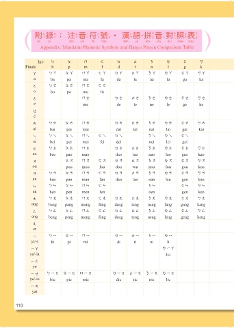 Appendix: Mandarin Phonetic Symbols and Hanyu Pinyin Comparison Table