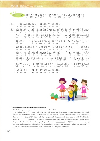 Part IV 課堂活動:你的生日是幾月?