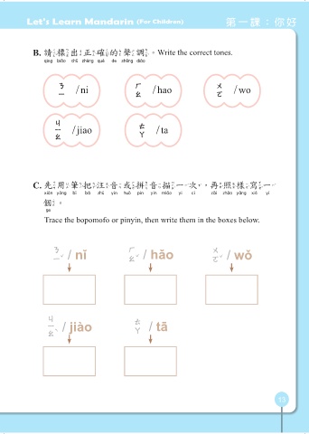 Trace the bopomofo or pinyin, then write them in the boxes below.