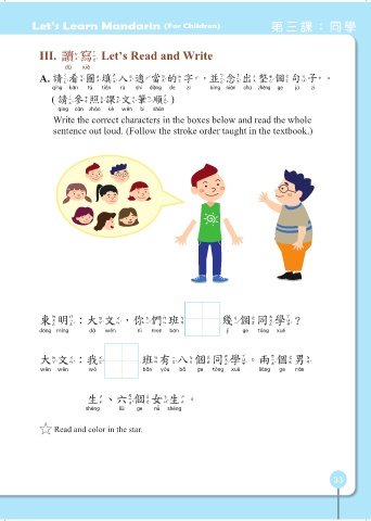 sentence out loud. (Follow the stroke order taught in the textbook.)