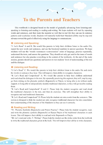 and read aloud the dialogues in the text. By repeatedly practicing this segment, they will, step by step,
