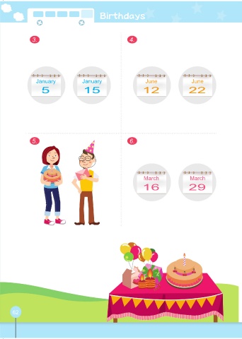 Birthdays 3. 4. January January June June 5 15 12 22 5. 6. March March 16 29 62