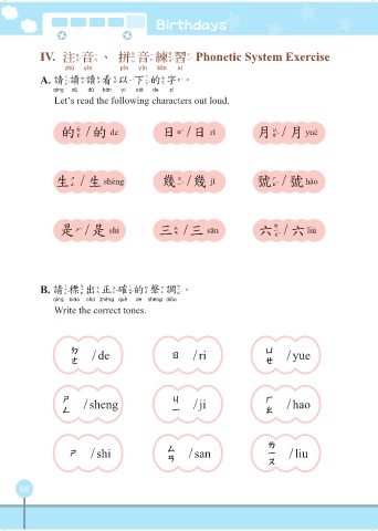 的 / 的 de 日 / 日 rì 月 / 月 yuè