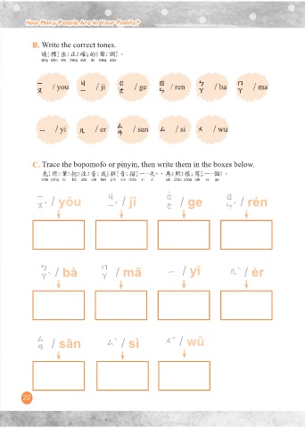 C. Trace the bopomofo or pinyin, then write them in the boxes below.