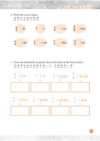 B. Write the correct tones.