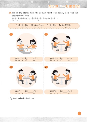 A. 吃午飯 B. 喝牛奶 C. 畫圖 D. 喝果汁