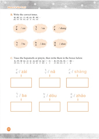 C. Trace the bopomofo or pinyin, then write them in the boxes below.